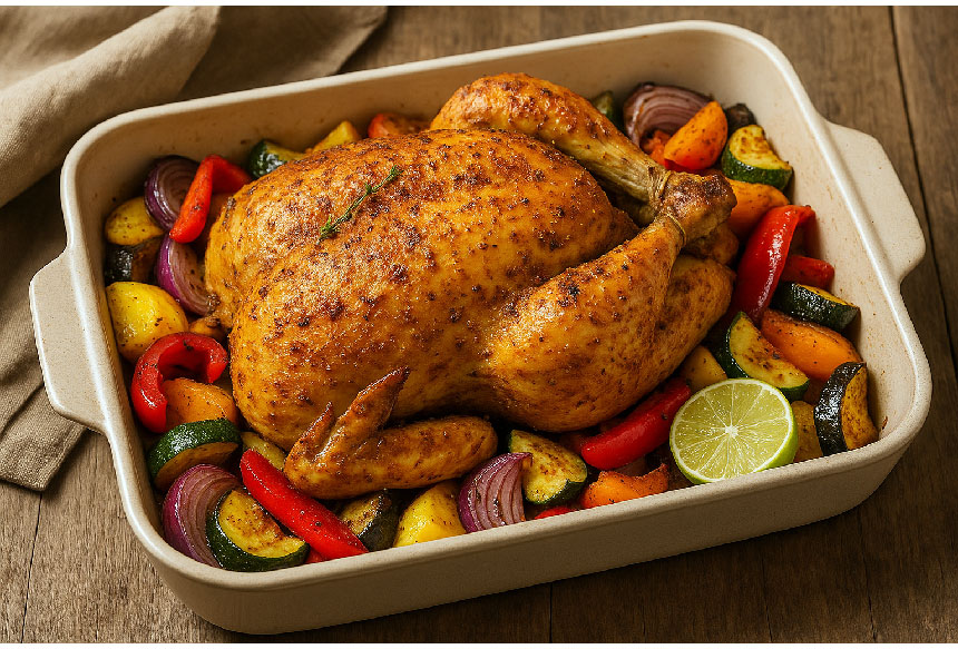 Poulet Rôti au Sel Caraïbes et Légumes du Soleil
