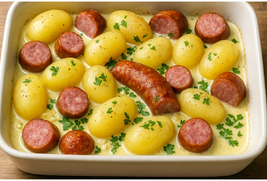 Vous pouvez retrouver cette recette sur son blog Pomme de terre à la cancoillotte et saucisses de Morteau fumées de Joce